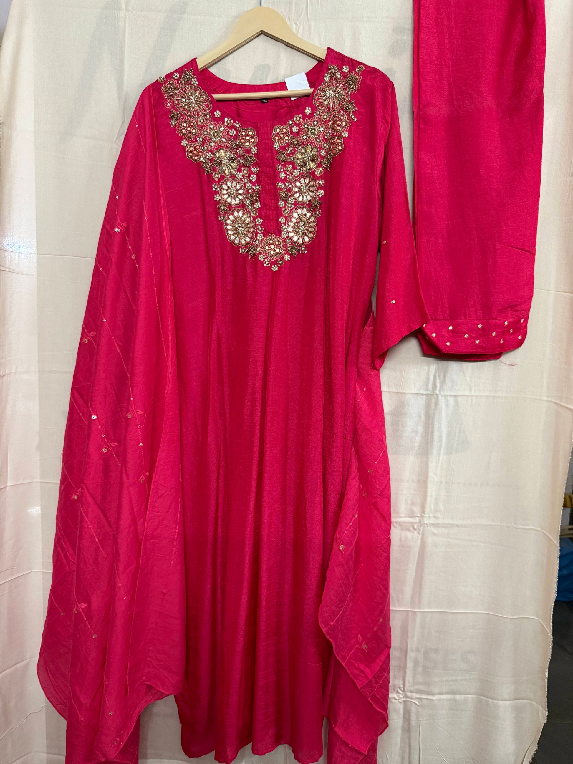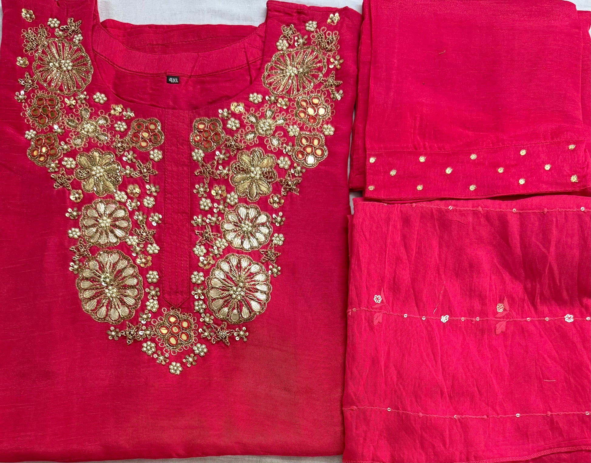 Rose Pink Embellished Kurta with Pants and Dupatta