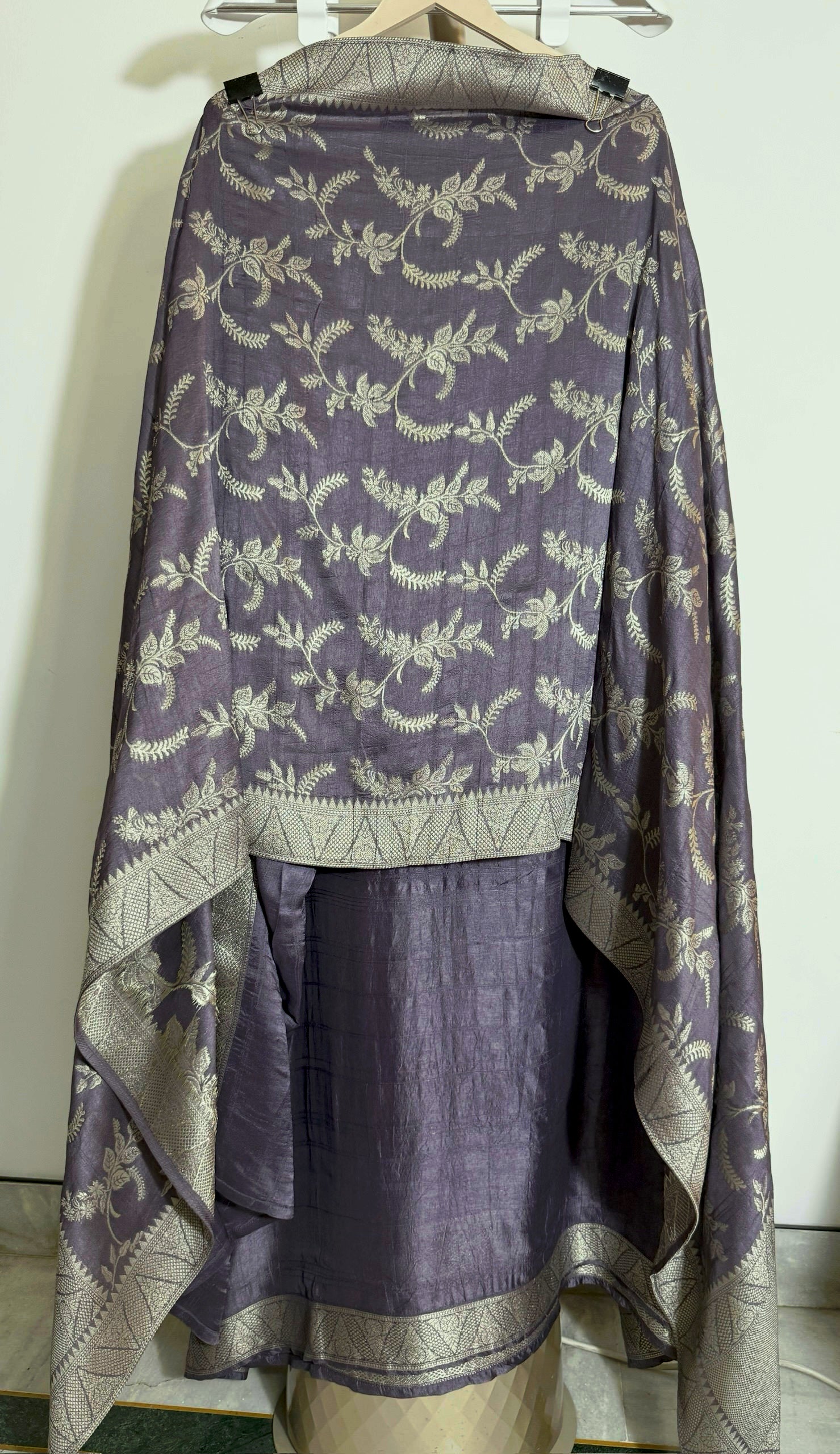 - Material & Colors: Silk dupatta in coordinated lilac with all-over silver zari foliage